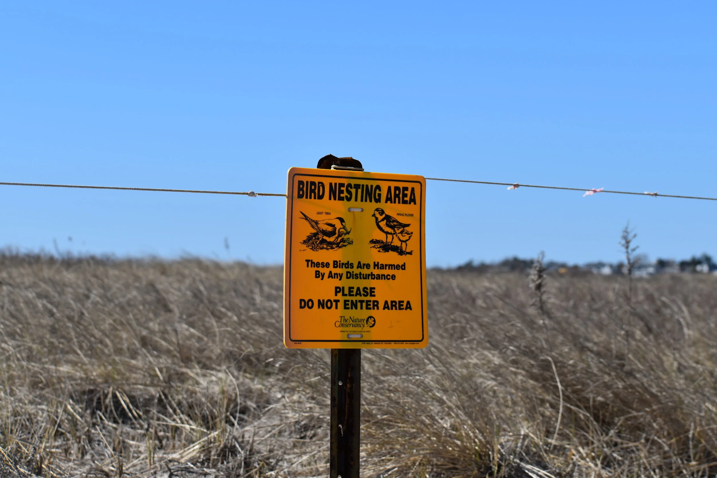 Protective fencing surrounds a bird nesting area managed by The Nature Conservancy of Rhode Island